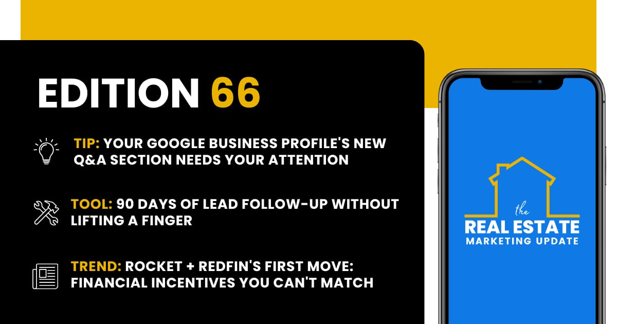 In this edition, you'll learn how to take control of a new Google Business Profile feature before AI answers questions for you, an AI-powered tool that follows up with your leads for 90 days straight, and what Rocket + Redfin's new "Preferred Pricing" program means for independent agents.