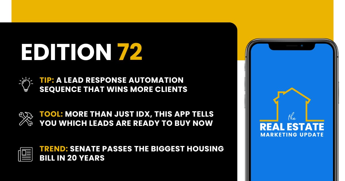 In this edition: the exact CRM automation sequence that responds to new leads in under 60 seconds (without you being at your desk), the platform that scores your leads by search behavior so you always know who to prioritize, and what the Senate's biggest housing bill in nearly 20 years means for how you approach buyer and seller conversations going into spring.